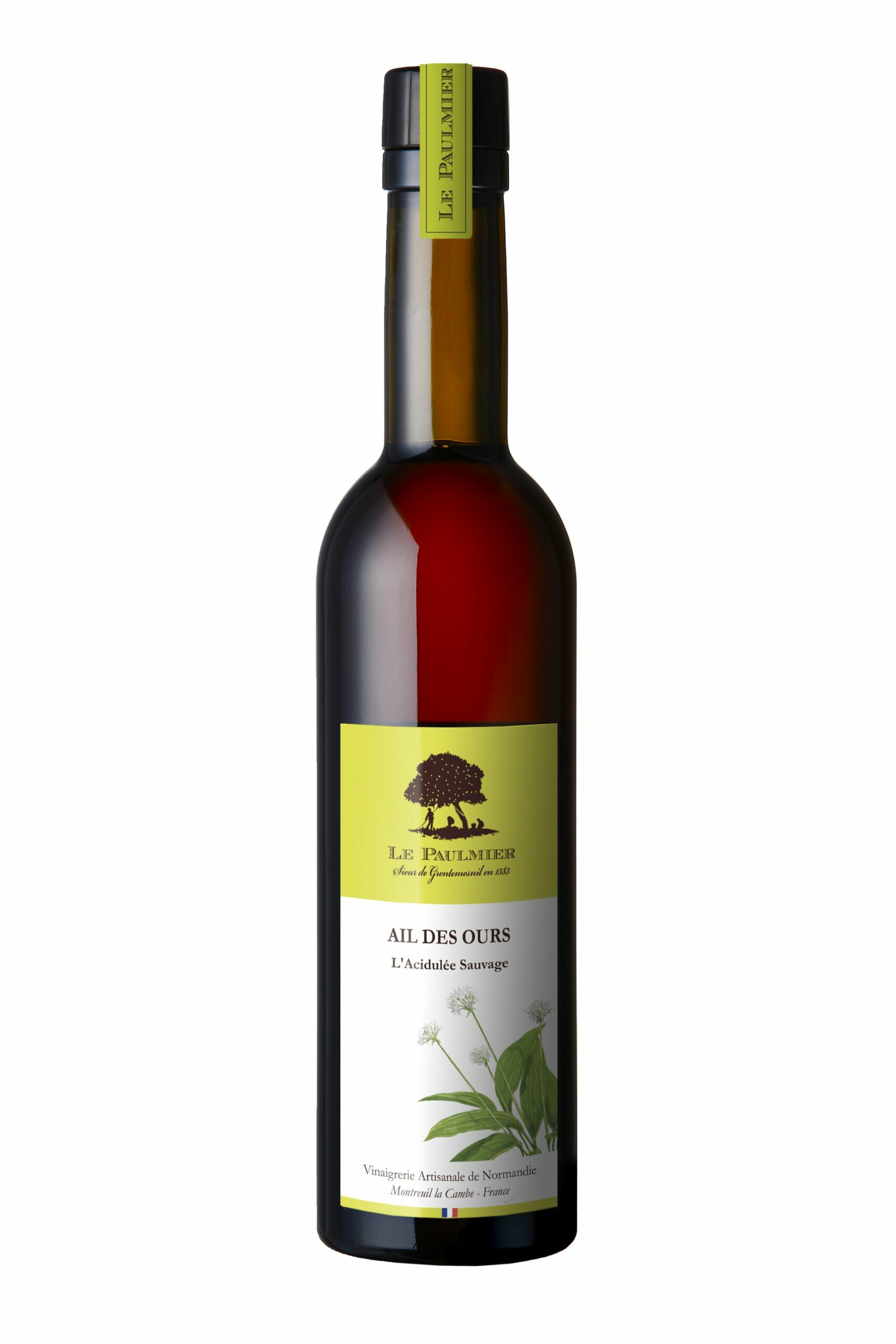 Vinaigrerie Artisanale de Normandie. L’ail des ours pousse spontanément dans les aulnaies de Normandie. Cueilli à la main au mois d’avril, puis macéré en futaille avec une acidulée de cidre , il donne naissance à cette étonnante acidulée sauvage. La Maison LE PAULMIER rend ainsi hommage à cette jolie plante de printemps aux saveurs si délicates