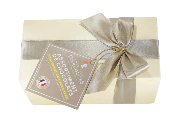 Fondez de plaisir pour notre assortiment de chocolat noir 70% de cacao, lait 33% de cacao et blanc le tout présenté dans un élégant ballotin cadeau 185g.