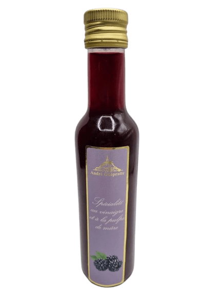 Assaisonnements et condiments produits de la Normandie Ingrédients: Vinaigre d ‘alcool, Purée de Mûres 40%, sucre, pectine. Sans colorant ni conservateur. Acidité 4°