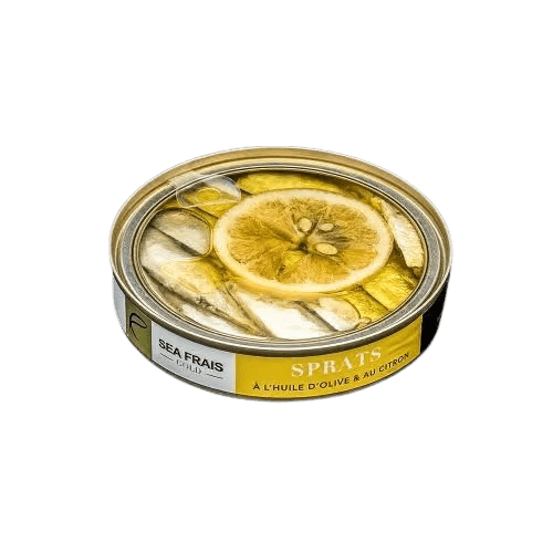 Issus d’une pêche artisanale, les sprats sont sélectionnés avec soin puis conditionnés à la main dans une boîte à opercule transparent. Un packaging innovant, qui permet de voir le poisson par transparence.