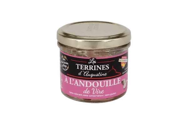 Pâté et rillettes Ingrédients: Viande et foie de porc de Normandie (France) élevé à la farine d’orge, andouille de vire 10 %, oignons, OEUFS, amidon modifié de maïs, sel, poivre.
