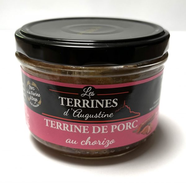 Pâtés et rillettes Ingrédients : Viande et organe hépatique de porc de Normandie (France) élevé à la farine d’orge, chorizo (viande et gras de porc, épices, sel, ail, poivre) 17%, , oignons, ŒUFS, amidon modifié de maïs, sel, poivre.